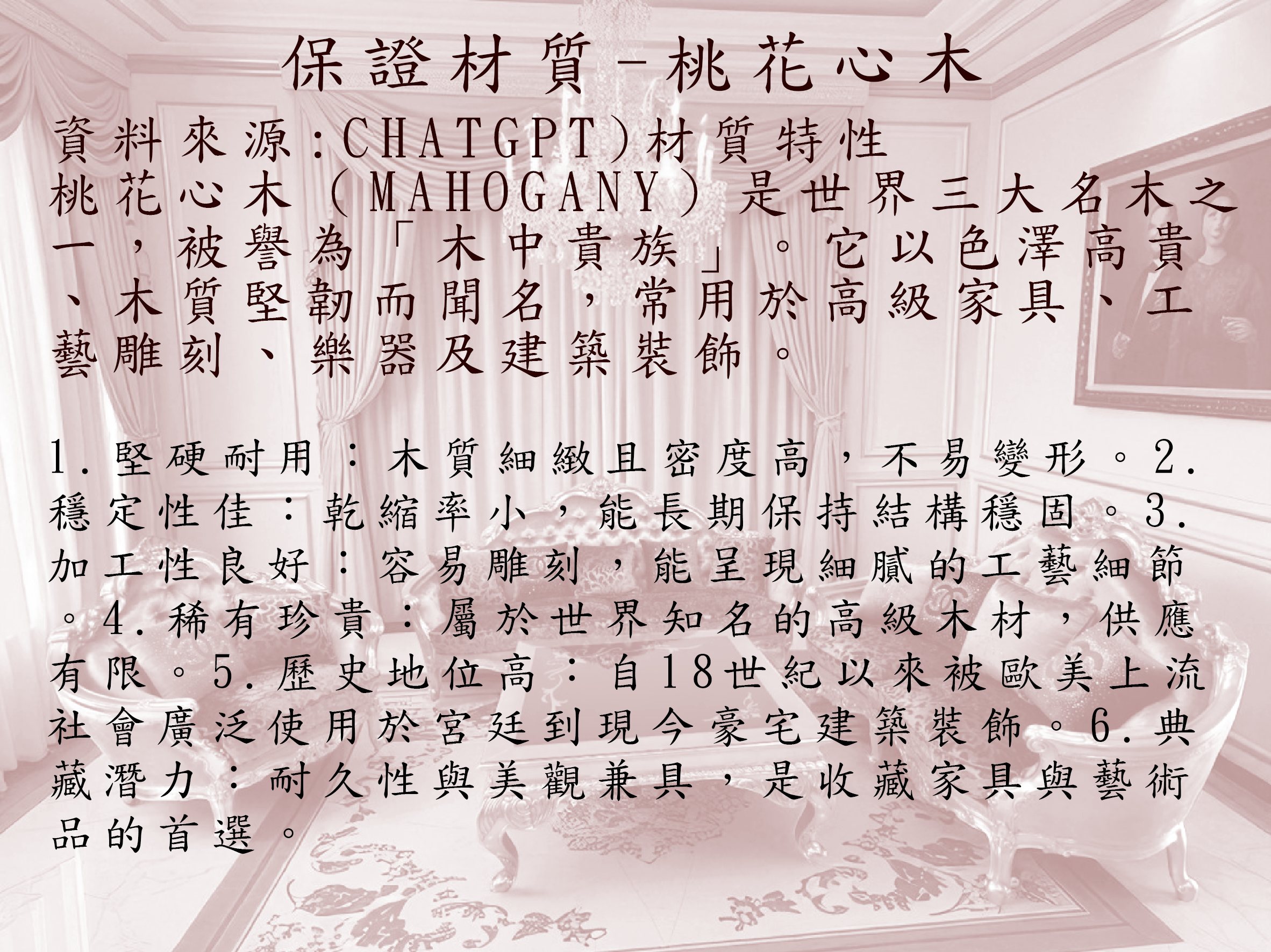 保證桃花心木材質