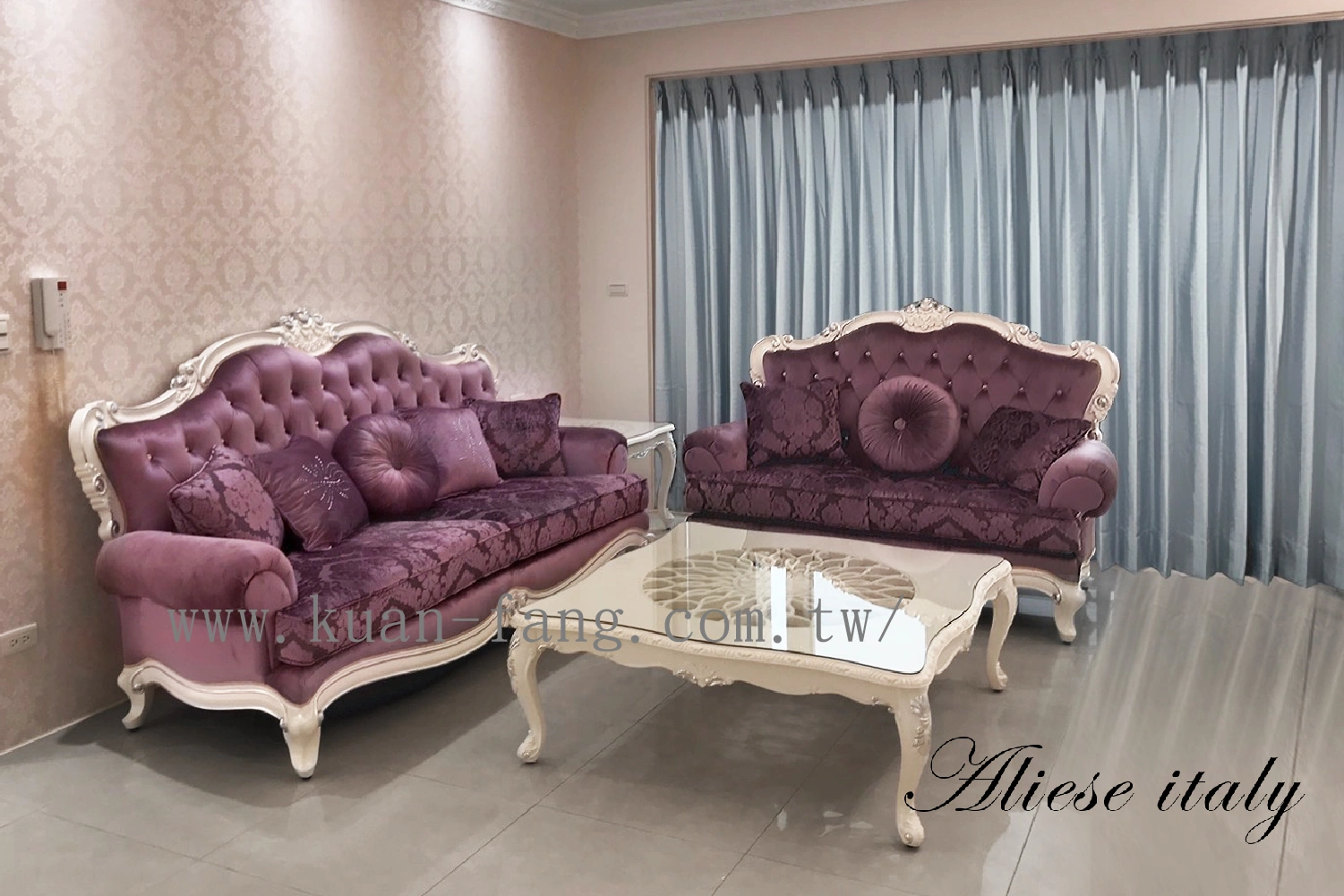 SF2113-MU玫瑰牛皮珍白沙發