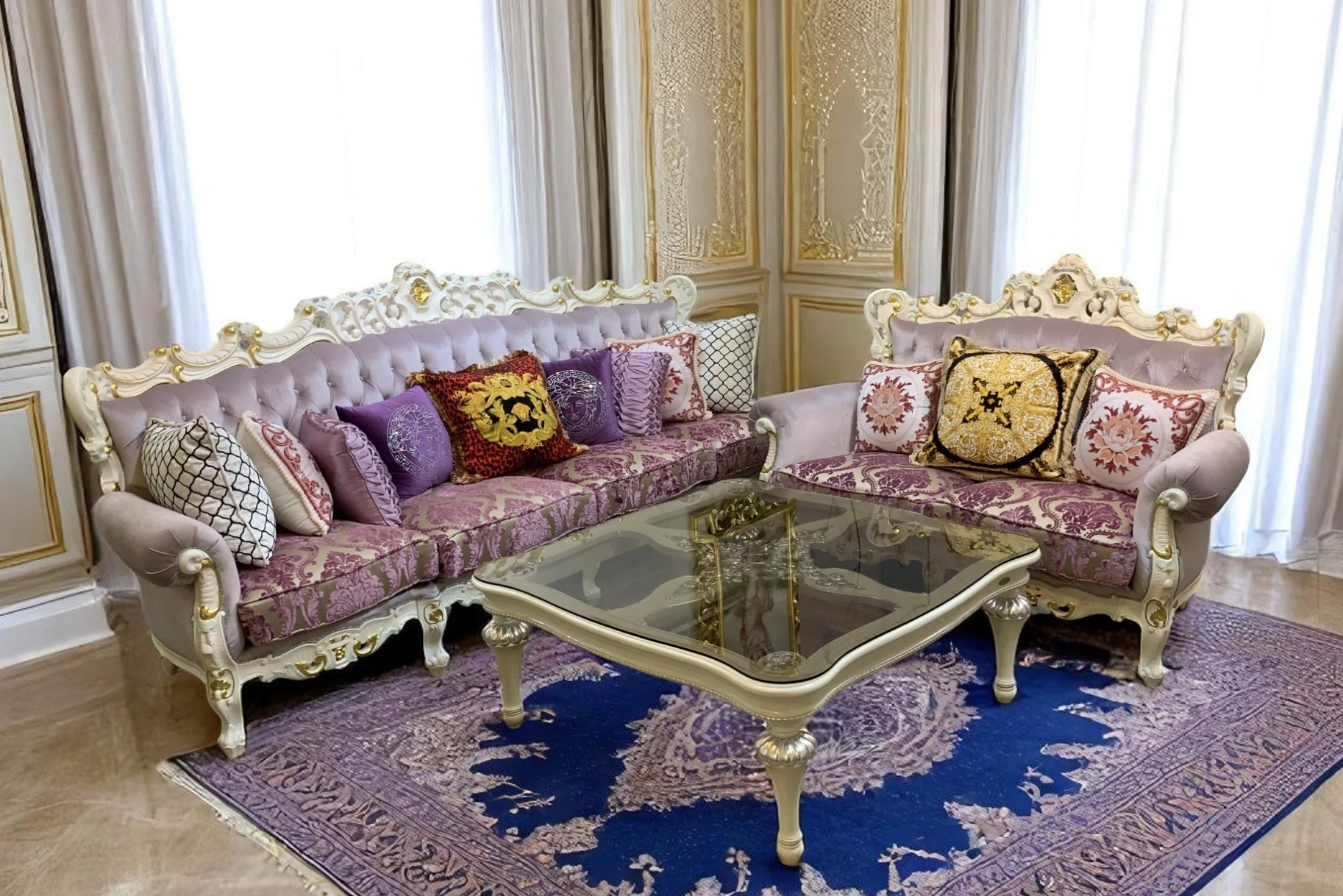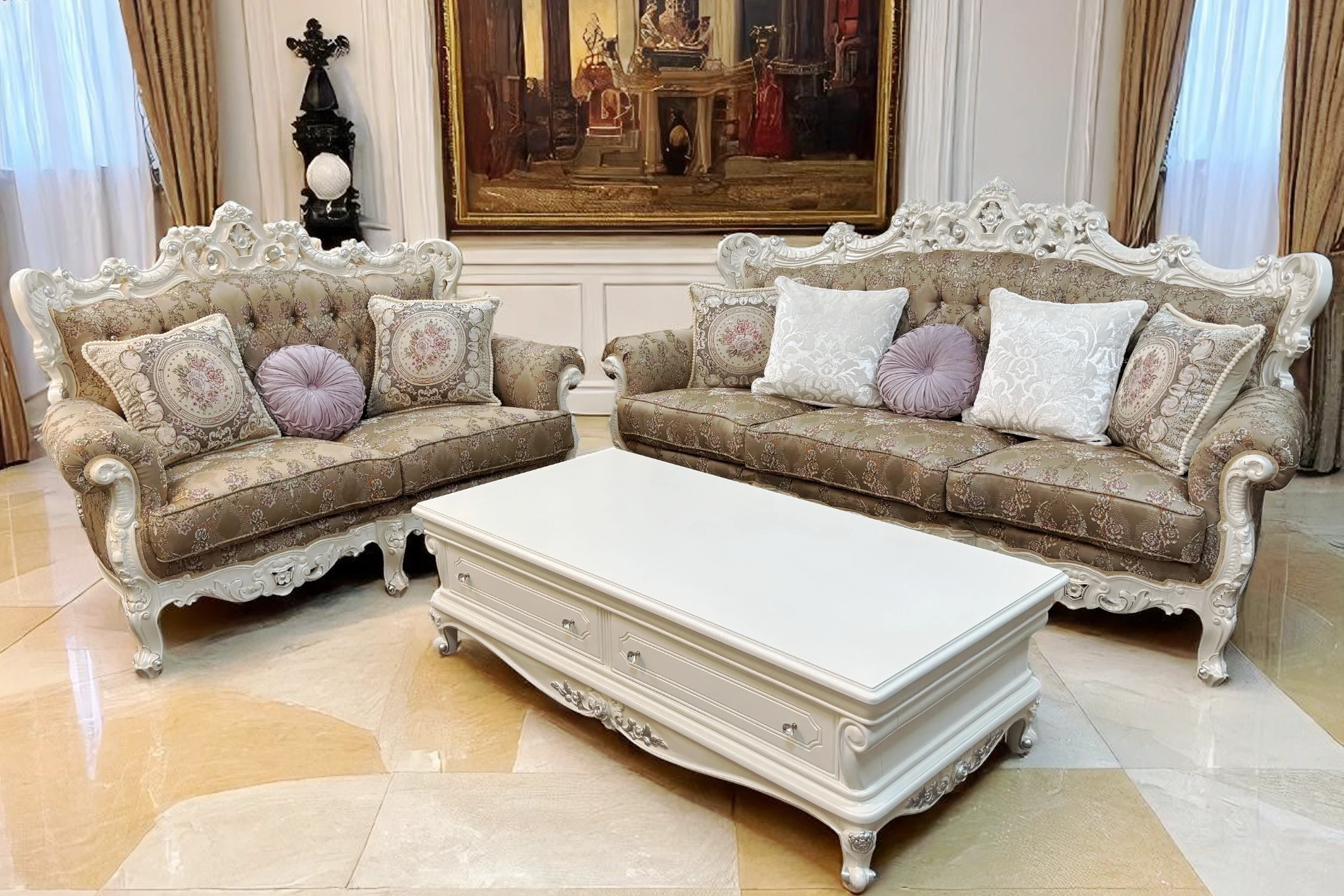 SF9.1-E法蘭西白牛皮金箔沙發