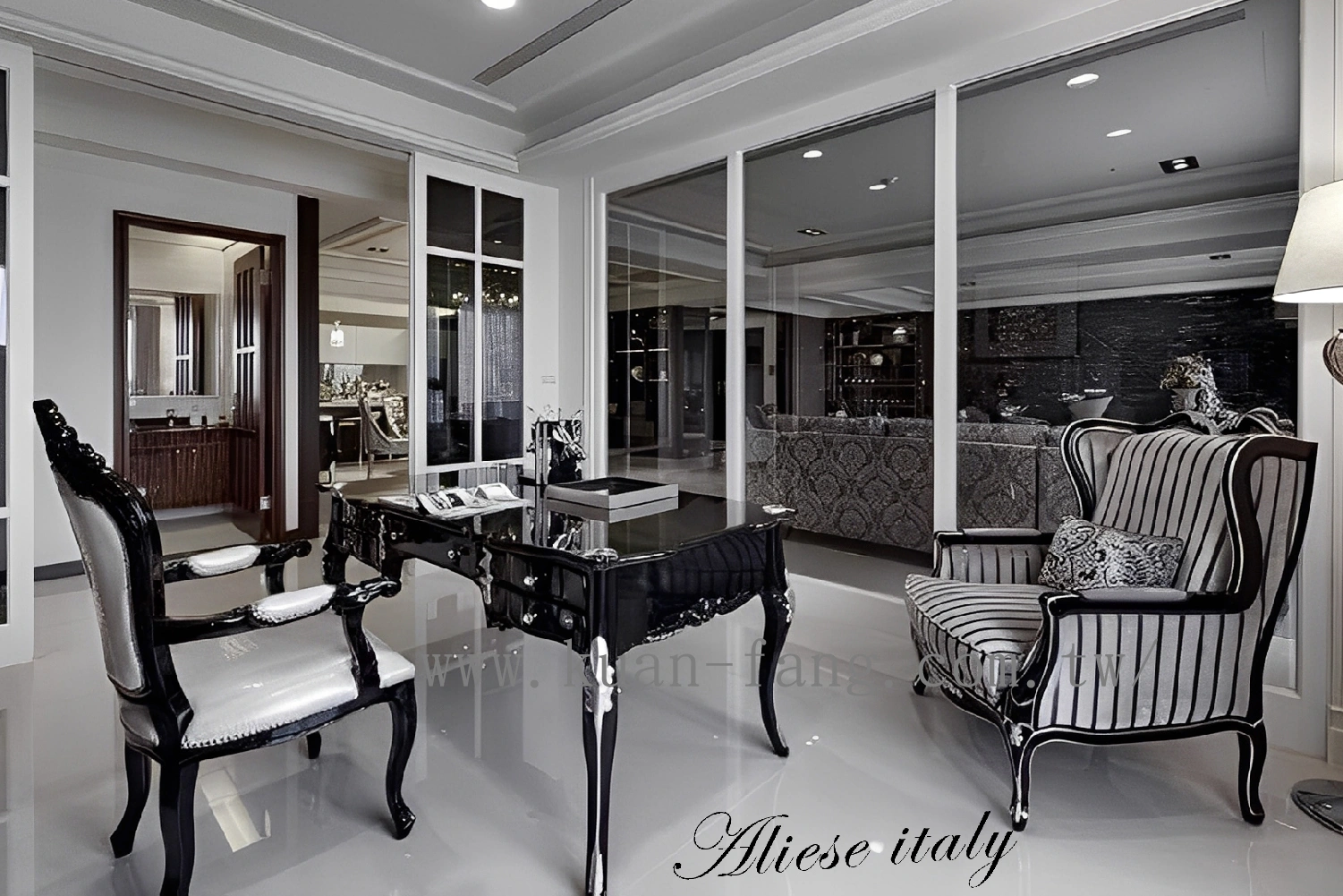 以簡約歐式風格為設計主軸,搭配白色點銀的設計元素,展現出清新、優雅的氛圍。